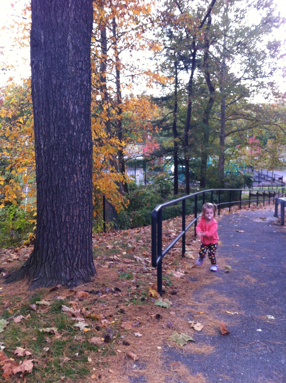 We spent this weekend trying to enjoy the calm before the storm. We figured that we had better do our best to get out some kinetic energy before we'd potentially be cooped in the house for 3 days straight (Sandy, you are testing my new East Coast motto--There is no bad weather, only bad clothes. I promised Claire a trip to the corner market to buy a lollipop after nap time. I would have preferred to do it before nap time but the colossal meltdown that took place while we were trying to put on shoes ensured that a nap had to happen first. Trip to the corner market during a hurricane? That's just the way we roll around here with our new East Coast motto)